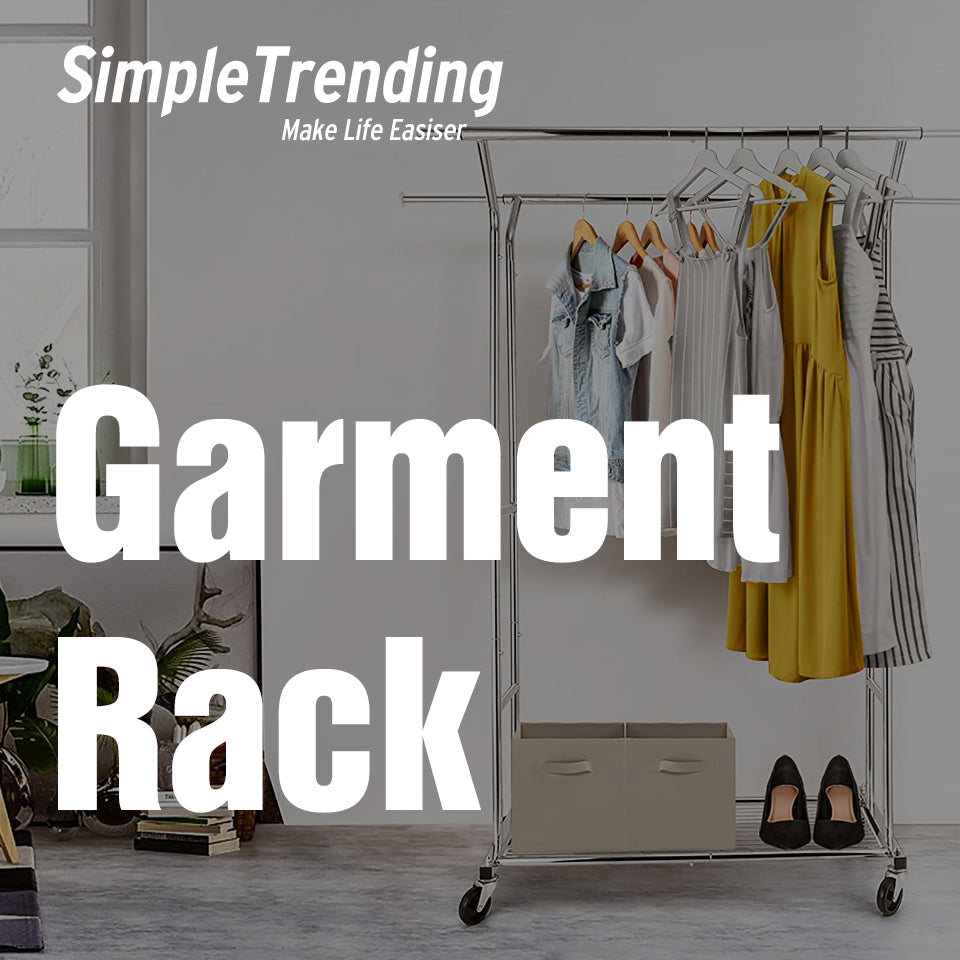 Simple Trending Standard Clothing Garment Rack, Rolling Clothes Organizer with Wheels and Bottom Shelves