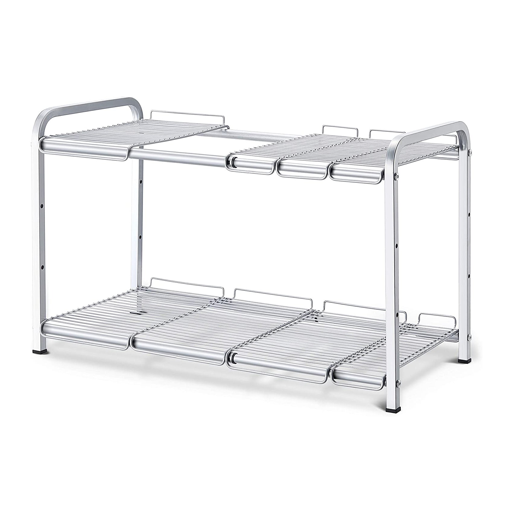 Simple Trending 2 Tier Under Sink Expandable Cabinet Shelf Organizer Rack for Kitchen Bathroom Storage, Silver