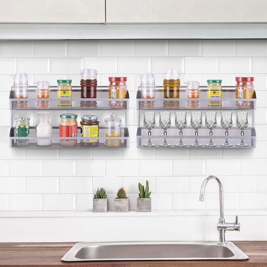 2 Pack- Simple Trending 2 Tier Spice Rack Organizer, Wall Mounted Spice Shelf Storage Holder for Kitchen Cabinet Pantry Door