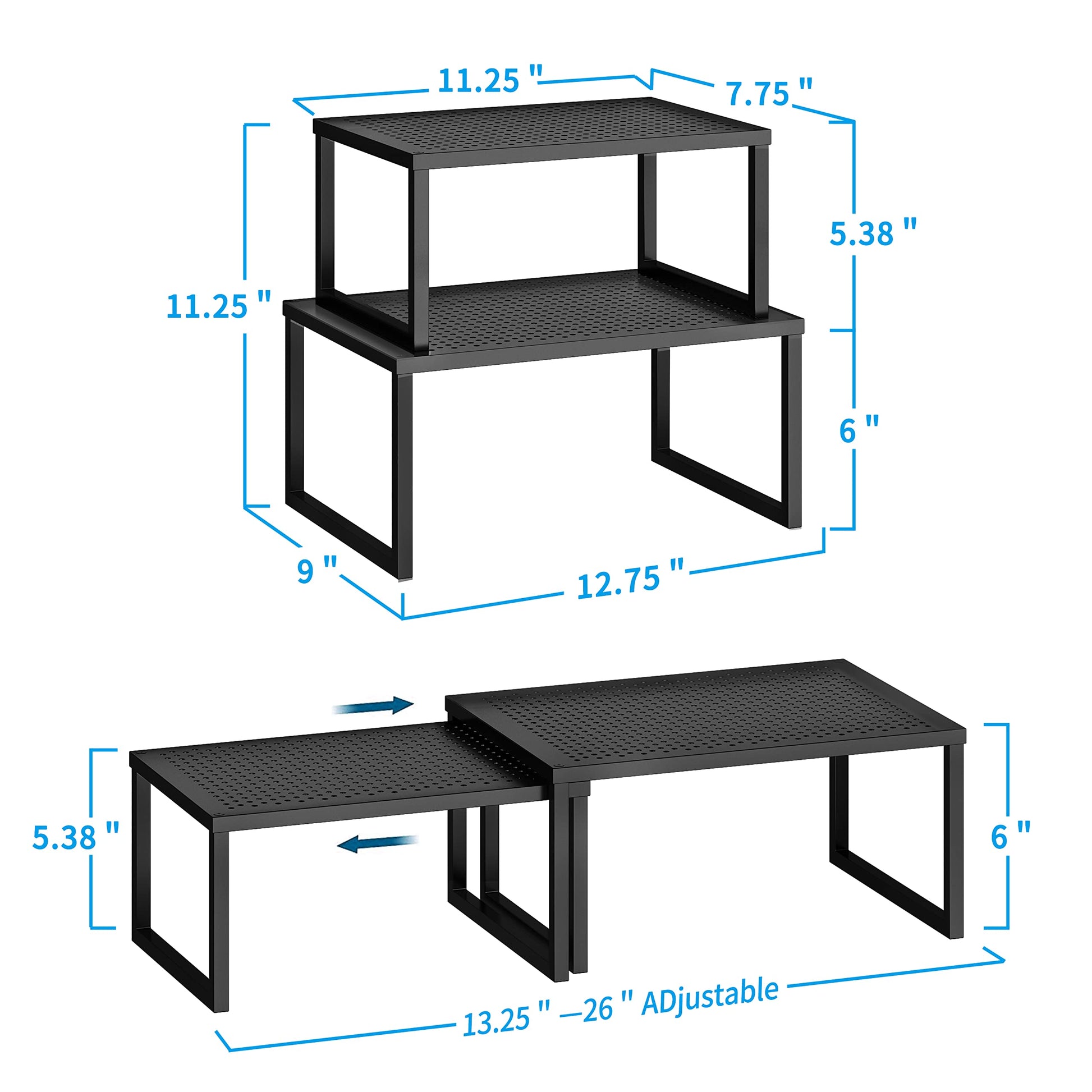 - 【Expandable & Stackable】Include two size shelves can be stacked and aligned to each other, and expandable from 13.25'' to 23", adjustable length to fit your different needs