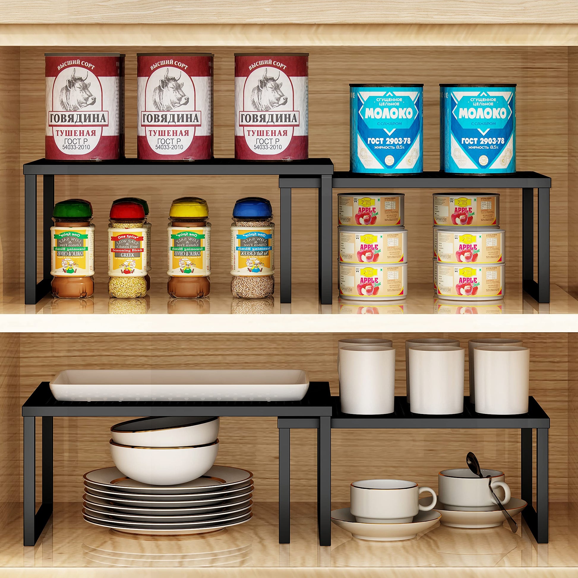 2 Pack- Simple Trending Cabinet Shelf Organizer, Kitchen Counter Shelf Rack for Pantry Organization, Expandable Stackable